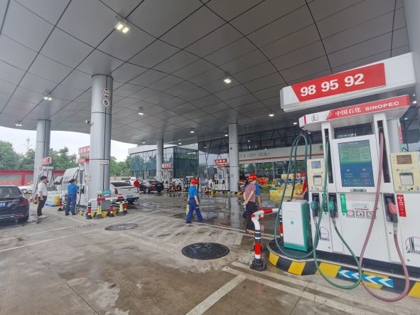 杭州杭石文一村加油站有限公司文二西路加油站(以下簡稱“文二西路加油站”)成立于2018年12月25日,負責人徐偉勝,主要從事汽油、柴油的儲存經(jīng)營,不銷售散裝汽油,無自助加油。加油站位于浙江省杭州市余杭區(qū)閑林街道何母橋村,占地面積2751.9m2。屬于中國石化銷售股份有限公司浙江杭州余杭石油分公司下屬加油站。 文二西路加油站持有杭州市應(yīng)急管理局核發(fā)的危險化學品經(jīng)營許可證,登記編號:浙杭安經(jīng)字[2021]00001503,許可經(jīng)營范圍:帶儲存經(jīng)營 成品油:汽油;有效期至2024年12月26日。已取得浙江省商務(wù)廳核發(fā)的成品油零售經(jīng)營批準證書,登記編號:油零售證書第31110170號,有效期至2024年1月15日。 加油區(qū)設(shè)置加油罩棚,罩棚下設(shè)置5臺三油品六槍潛油式加油機(汽油)和1臺三油品六槍加油機(此加油機總平面布置圖中編號M106,目前只有柴油,原有92#、95#汽油已不再加注);埋地罐區(qū)設(shè)有4只單層鋼制埋地油罐,其中30m3汽油罐1只(98#)、50m3汽油罐2只(92#、95#)、30m3柴油罐1只(0#),折算后油罐總?cè)莘e145m3(柴油罐折半計入),該站屬于二級加油站。加油站已安裝汽油卸油和加油油氣回收系統(tǒng)。