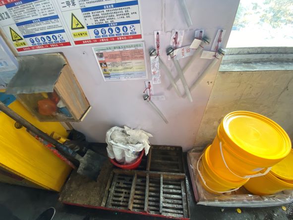 浙江宏竹塑膠五金有限公司成立于2006年10月30日,注冊資本為830萬美元,法定代表人為蔡俊宏,統(tǒng)一社會信用代碼91330421790951264B,公司地址為浙江省嘉興市嘉善縣惠民街道武夷路18號,經(jīng)營范圍包括生產(chǎn)銷售:塑料板、管、型材,塑料包裝箱及容器,塑料零件,日用塑料雜品,塑料成型模具,體育器材配件,濾水泵、抽水泵、電動空氣泵,電動機,變壓器、手電筒等;貨運:普通貨運。 浙江宏竹塑膠五金有限公司生產(chǎn)過程中涉及的危險化學品主要分溶劑類、膠粘劑類和液體噴劑類。溶劑類危險化學品分別為油墨、天那水、乙醇、抹字水、洗網(wǎng)水、稀釋劑、PP水,主要使用于產(chǎn)品裝配時表面擦拭、印刷產(chǎn)品、網(wǎng)版擦拭及油墨稀釋。膠粘劑類危險化學品分別為MEK膠水、萬能膠、AB膠,主要使用于產(chǎn)品裝配時的塑膠軟管粘接、塑膠硬管粘接及金屬管與塑膠管粘接。液體噴劑類危險化學品分別為脫模劑、防銹劑、清洗劑、防卡耐磨劑,主要使用于模具保養(yǎng)、機械保養(yǎng)。危險化學品儲存場所為二號車間西北角的危險化學品中間倉庫。