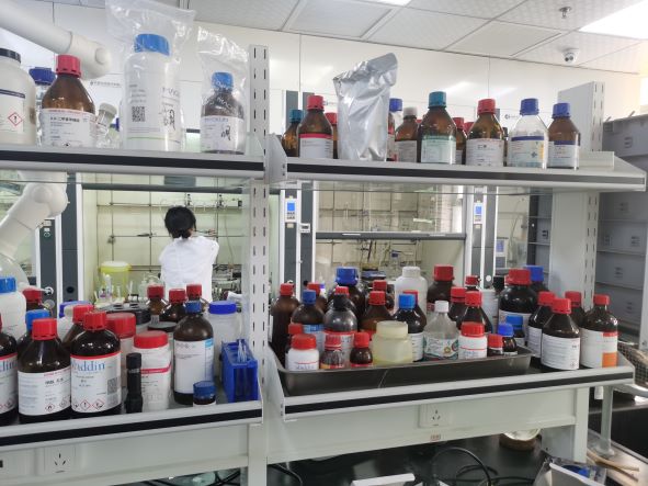 根據(jù)《危險化學品目錄(2015版)》辨識,企業(yè)在科研過程中涉及使用的危險化學品為甲苯、丙酮、鹽酸、三氯甲烷、乙基甲基酮、硫磺、硝酸、水合肼、硝酸銀、一甲胺溶液、硝酸鋅、甲醇、乙醇、乙酸乙酯、正辛烷、氫氧化鈉、四甲基氫氧化銨、氯苯、正己烷、正丙醇、亞硫酸氫鈉、氧化鎘、氯化鋅、氟化銨、壬基酚聚氧乙烯醚、三氯化鋁、過硫酸銨、正丁醇、叔丁醇、丙酸、鄰二氯苯、二丁醚、丁酸、六甲氧基二硅烷、1,3,5-三氯苯、氫氧化銨溶液(氨水)、1-辛硫醇(正辛硫醇)、二氯甲烷、溴乙酸甲酯、N-丁基咪唑、巰基乙酸、萘、硼酸、乙腈、環(huán)己烷、氫氟酸、三氧化鉻(Ⅵ)、對苯二酚 、亞硝酸鈉 、氫氧化鉀溶液、氫化鈣、3-氯丙酸 、4,4-二氨基二苯二硫醚、正癸烷 、2-甲基-3-丁炔-2-醇叔丁基硫醇、環(huán)辛烷、鄰二甲苯、苯甲醚、甲醛溶液、環(huán)氧氯丙烷、對二甲苯、溴乙烷、乙酰丙酮、對甲苯磺酰氯、三苯基磷、異辛烷、甲基丙烯酸異丁酯、三乙胺、四氫呋喃、環(huán)己酮、甲基丙烯酸丁酯、乙二醇二甲醚、石油醚、順丁烯二酸酐、1,4-二氧六環(huán) 、2-巰基乙醇、正丁胺、乙醇胺、乙酸甲酯、丙烯酸異丁酯、環(huán)己硫醇、十二烷硫醇、乙二醇乙醚、戊二醛、異丙胺、過氧化二苯甲酰、氮氣、氬氣等共計89種危險化學品。