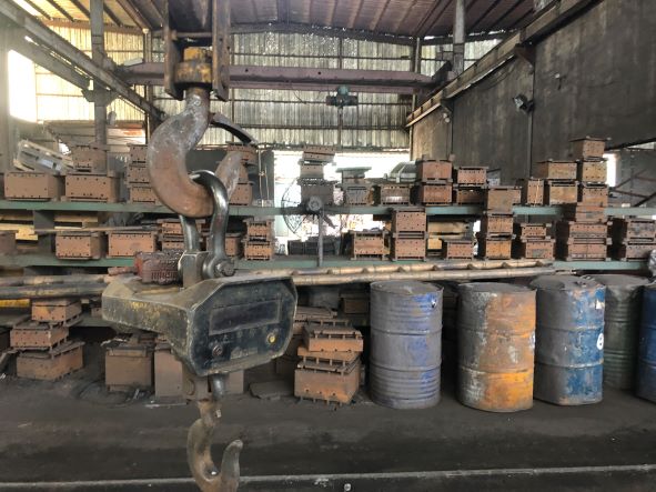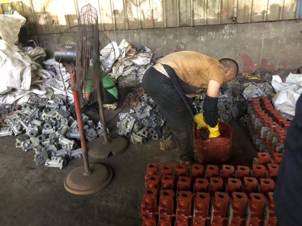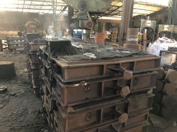 該企業(yè)主要生產(chǎn)鐵鑄件,生產(chǎn)過程中主要涉及制模、熔煉、吊運、澆鑄、浸漆、焊接切割等作業(yè),主要生產(chǎn)設(shè)備為造型機(jī)、射芯機(jī)、中頻爐、澆包、拋丸機(jī)、起重機(jī)等,主要生產(chǎn)原料為廢鐵、生鐵、硅鐵、錳鐵等。