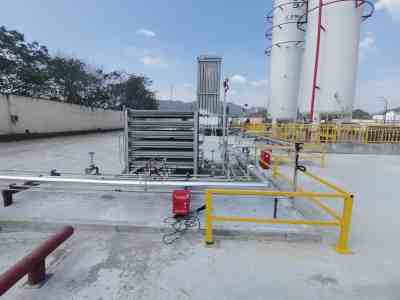 杭州豐誼達銅業(yè)有限公司廠區(qū)東北側(cè)設有1座LNG氣化站,用地面積3596㎡,主要建構(gòu)筑物為站區(qū)圍墻、值班室、儲罐防火堤、消防水池及泵房等。LNG氣化站規(guī)模為200m³,主要設備包括:2個100m³LNG儲罐,2個4000Nm³/h主氣化器(一用一備),2個1500Nm³/h主氣化器(一用一備),2個儲罐增壓撬,1個卸車增壓撬,1個EAG加熱氣化器,1個氣化調(diào)壓計量加臭撬和1個集中放散管,主要為車間豎爐提供燃料。本項目LNG氣化站屬于城鎮(zhèn)燃氣項目,適用于《城鎮(zhèn)燃氣管理條例》